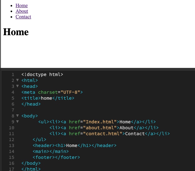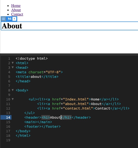 Populate each new HTML file with the same <ul> for navigation and at least a <h1> header to state the page’s title.