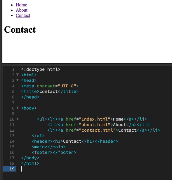 Using the href=”” attribute and relative file paths, create links to each of the pages from the <ul> in the index.html document.